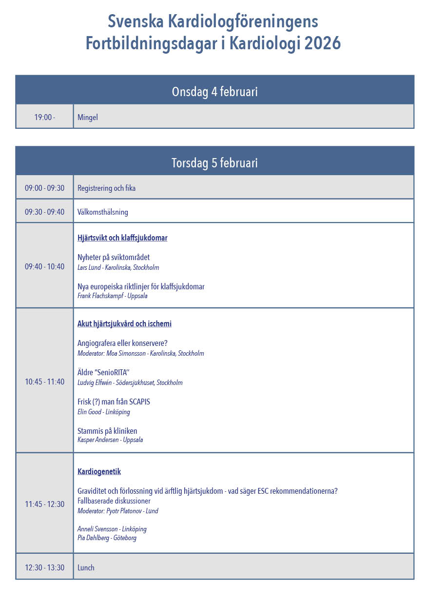 Program för Fortbildningsdagar i Kardiologi 2026