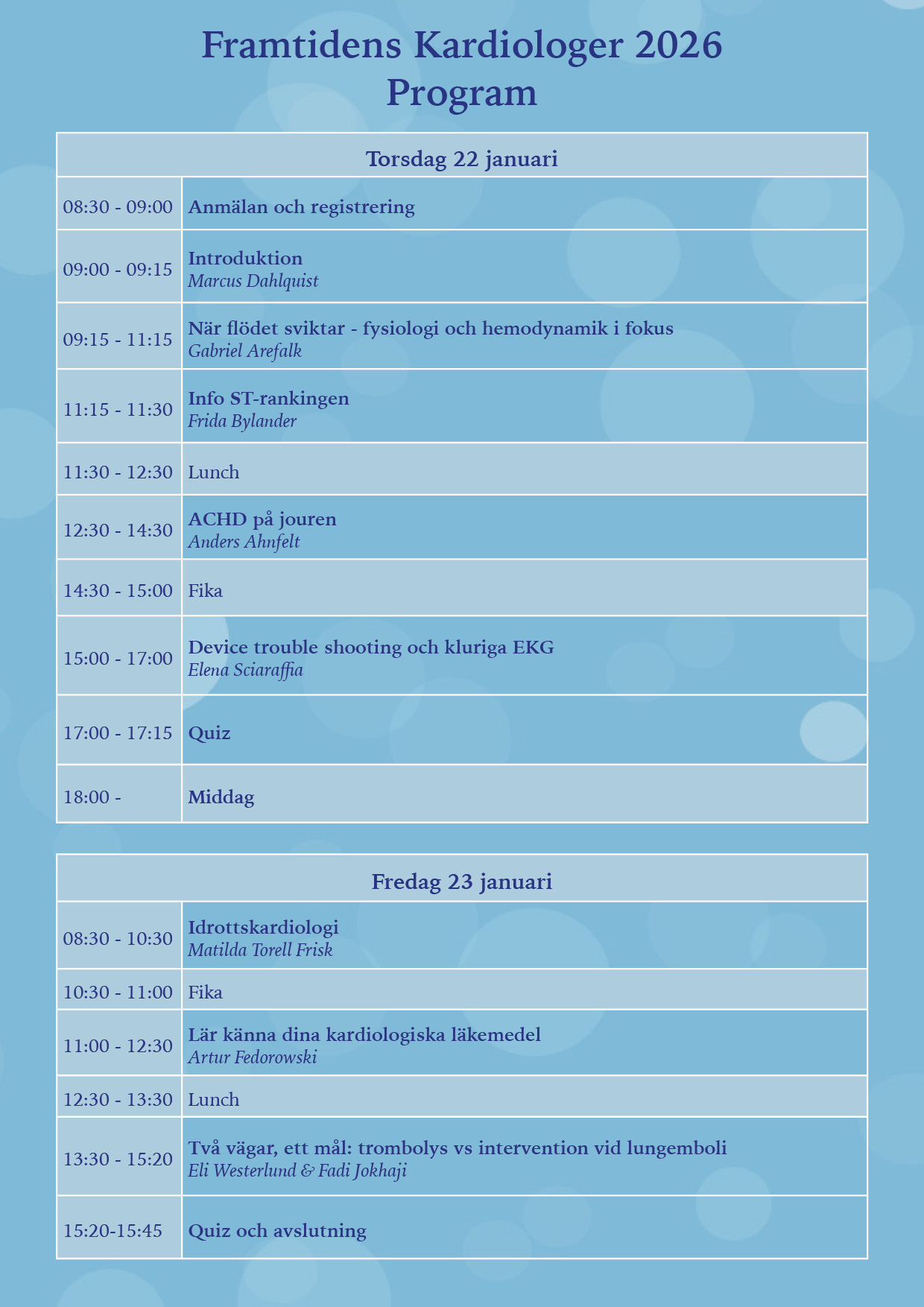 Delmål: Kardiologi 2015c1, c2, c3, c6, c8, c9, c10Kursmål 2021STc1, STc2, STc3, STc6, STc8, STc9, STc10Internmedicin 2015c1, c2, c3, c7Internmedicin 2021STc1, STc2, STc3, STc7