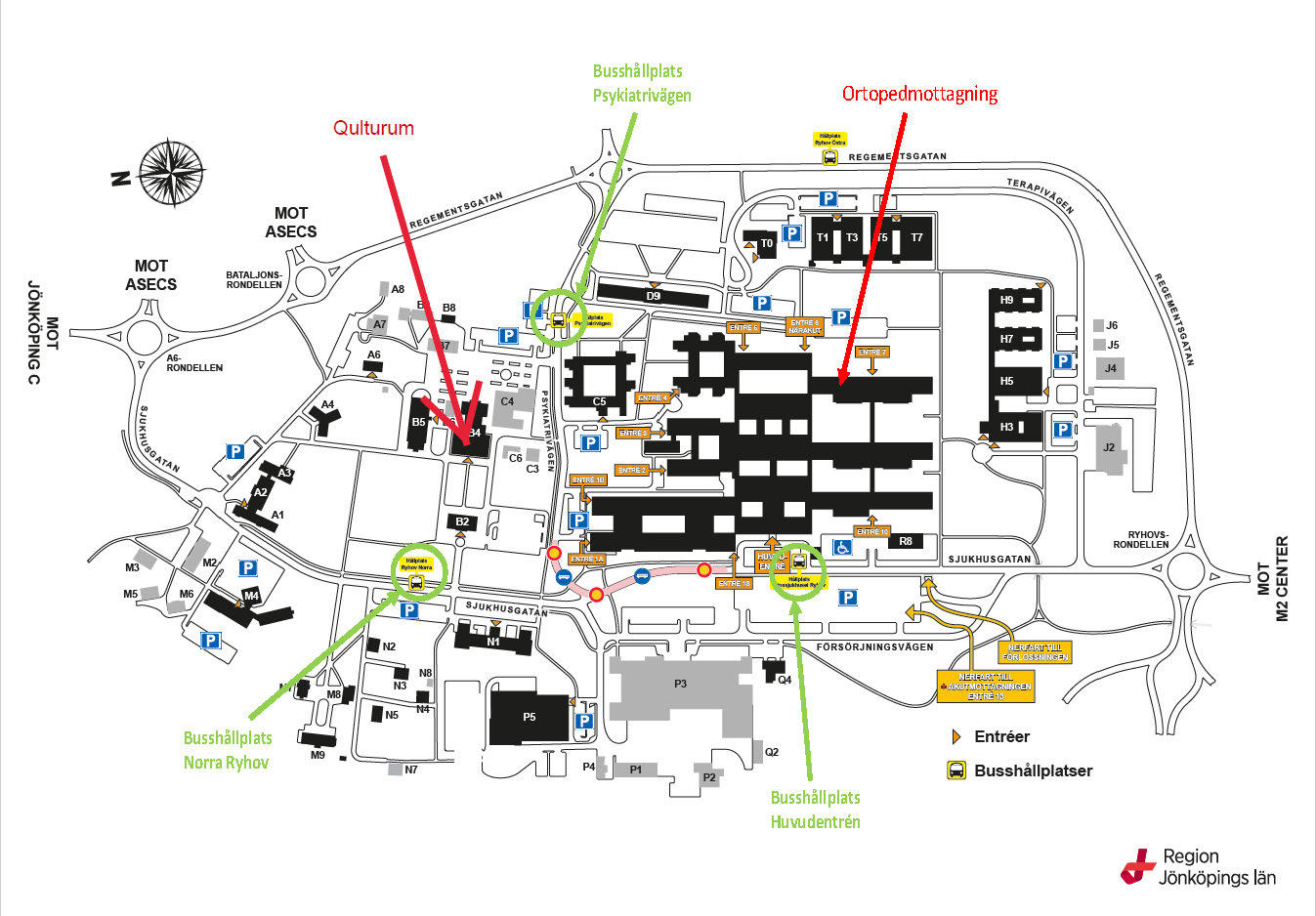 Då det är ytterst begränsat med parkeringsmöjligheter på Länssjukhuset Ryhov så rekommenderar vi att ni tar bussen.